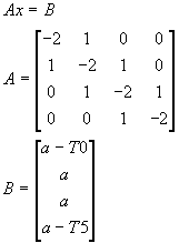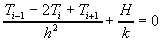 with boundary conditions T(0)=T(L)=0. We first finite difference the equation,